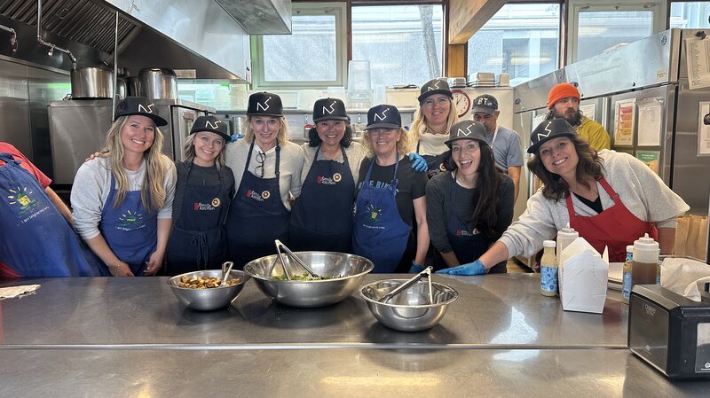 Bend Premier Brokers Laurenn Schiek, Julie Carnagey, Sherry Ortega, Catherine Bedford, Jennifer Burkett, Katharine Miller, Danielle Gates and Lesley Snider were the work force which prepared food at Family Kitchen last Friday. Northstar Community Initiative, a 501(c)(3) charity, is the brainchild of Danielle Gates and is managed by a board of directors made up primarily of Bend Premier brokers. Besides working in the kitchen, Northstar provided donations of office supplies which Family Kitchen indicated they needed as well as the hats used with the meal prep, created by Matzke Designs.